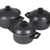 Ga je met de tent, camper of caravan op pad? Dan is deze pannenset in combinatie met een kleine kooktoestel ideaal om mee te nemen. Deze pannenset is zo ontworpen dat je ze in elkaar kunt stapelen en ze weinig ruimte in beslag nemen. Zo kun je dus, waar je ook bent, een lekkere maaltijd klaarmaken.