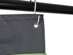 Een multifunctionele 14-vaks organizer met spiegel. Beschikt over 2 ruime vakken, 6 medium vakken, 6 kleine vakken en een spiegel. Eenvoudig en op diverse manieren te bevestigen. Zo kan dit tentschort met de pees worden opgehangen aan een caravanrails, met het klittenband aan een tentstok of met de zeilogen aan haken. De lussen onderaan zorgen voor extra fixatie. Gemaakt van een hoge kwaliteit 600 denier polyester.