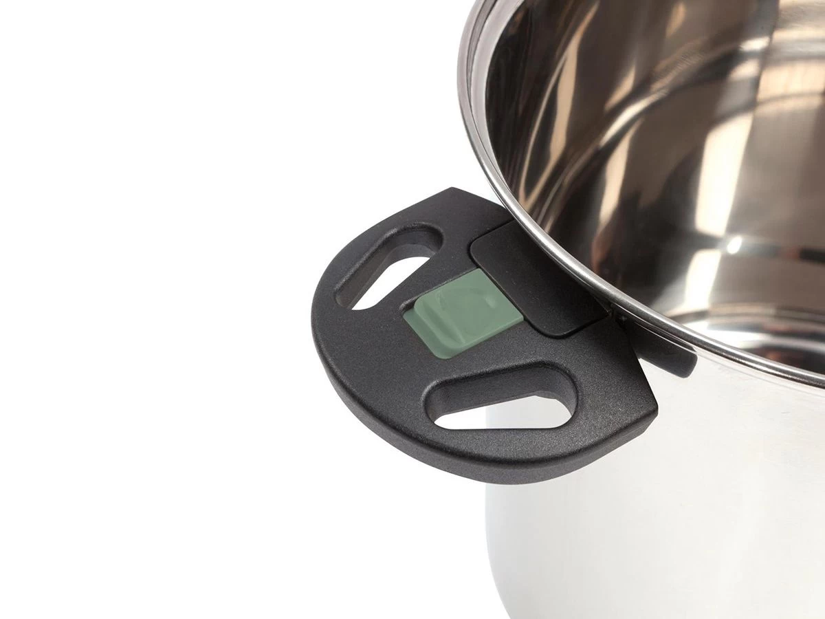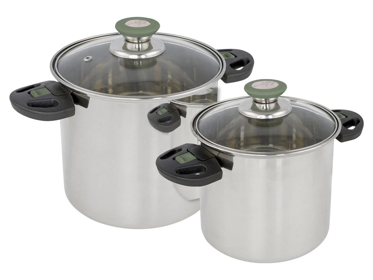 Deze luxe RVS pannenset bestaat uit twee nestbare pannen met inklapbare handvatten voor extra ruimtebesparing. Bespaar tot wel 40% aan ruimte met deze luxe pannenset.