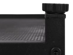 De Grove kast bestaat uit 3 legplanken, de onderste 2 zijn voorzien van gaas en het bovenste blad is gemaakt van MDF met daarop een stoere houtlook print. Doordat het blad gemaakt is van MDF is de kast niet water- en hittebestendig. De kast heeft een afmeting van 80 x 30 x 46 cm en weegt ongeveer 8,5 kg.