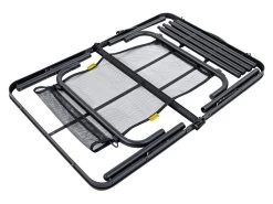 Wil jij in industriële stijl kamperen? Kies dan voor deze stijlvolle tafel met een prachtig betonlook tafelblad. De tafel heeft een zwart frame wat in combinatie met het blad een stoere uitstraling heeft. De tafel is ideaal te gebruiken als eettafel voor ongeveer 2 personen. Onder het tafelblad bevindt zich een lectuurnet, ideaal voor het opbergen van bijvoorbeeld telefoons, tijdschriften, boeken of zonnebrandcrème.