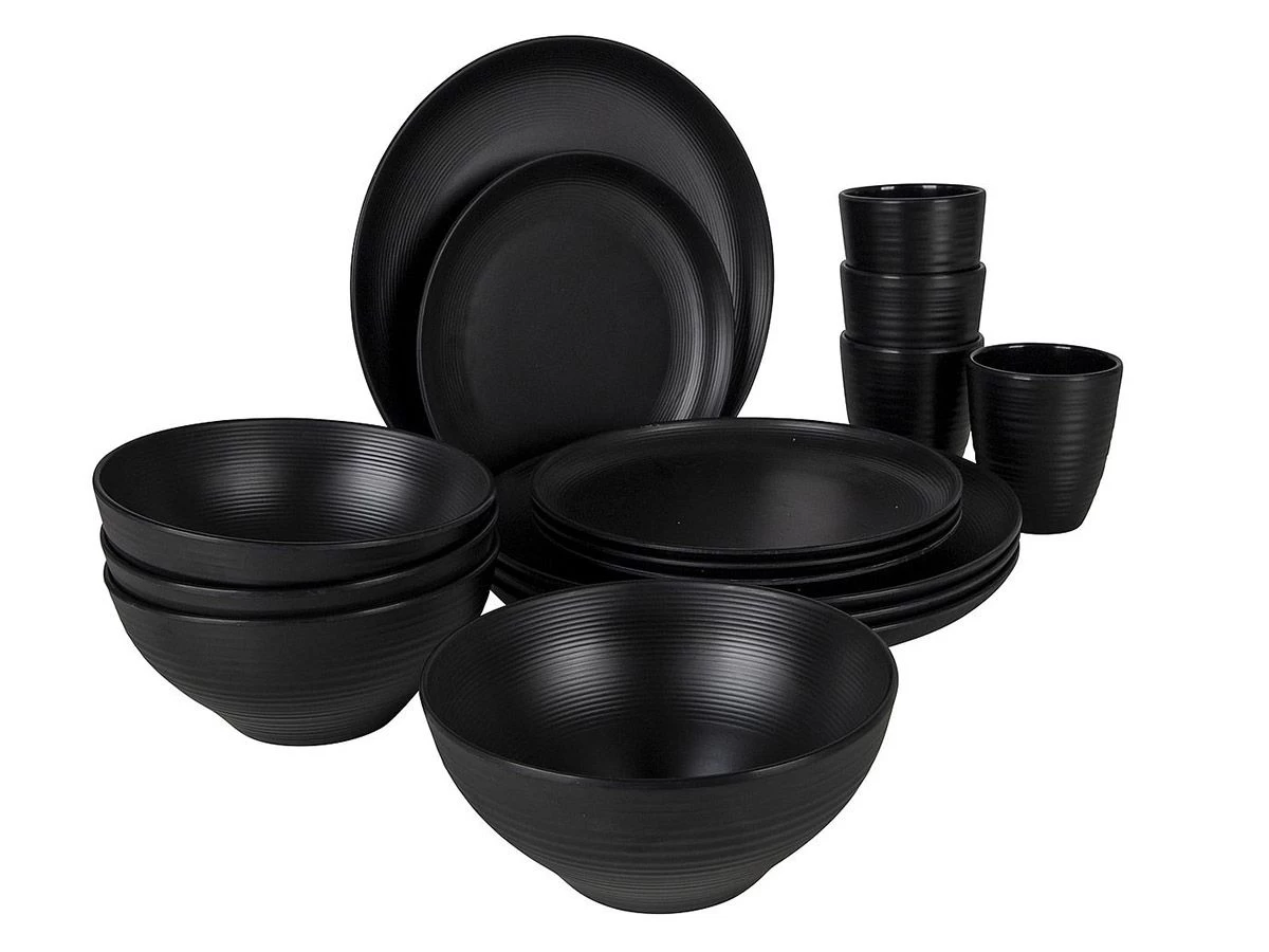 Het servies is 100% BPA vrij en bestaat uit 4 dinerborden (Ø 26 cm), 4 ontbijtborden (Ø 20 cm), 4 kommen (Ø 15 cm, 650 ml) en 4 bekers (Ø 8 x 10 cm, 300 ml). Het servies kan een temperatuur hebben tot maximaal 80 graden en is vaatwasmachinebestendig.