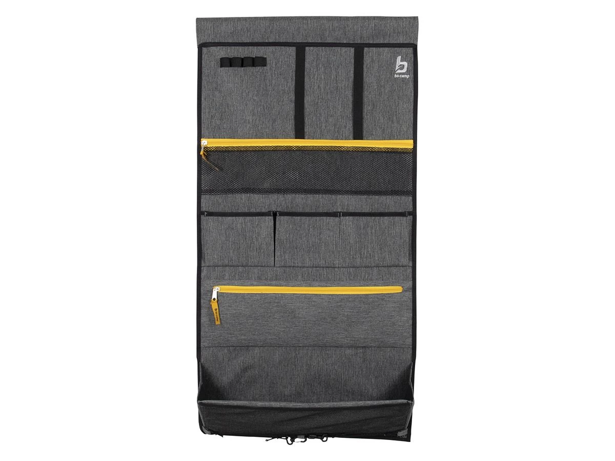 Kleine spullen slingeren overal rond en hebben geen vaste plek.. Ben jij vaak van alles kwijt in de tent? Maak dan gebruik van een tentschort! De organizer beschikt over 1 ruim vak, 2 medium vakken met rits en 3 kleine vakken. Voor het ruime vak zit nog een extra opbergruimte door het gaas. Daarbij heeft de organizer elastieken aan de bovenkant voor bijvoorbeeld een krant achter te steken. Ook heeft het tentschort een pennenhouder.