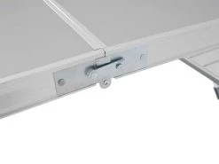 Zowel het frame, de zitting en het tafelblad zijn gemaakt van lichtgewicht aluminium, hierdoor is de picknicktafel waterproof en hittebestendig. Het zitgedeelte is 41 cm hoog en het tafelblad beschikt over een parasolgat.