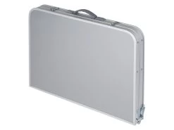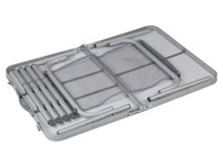 Deze compacte tafel van Bo-Camp kun je eenvoudig mee nemen doordat hij is in te klappen tot een handig koffermodel. De tafel heeft uitgeklapt een afmeting van 90 x 60 cm en is verstelbaar in vier verschillende hoogtes (36/50/67/81 cm). Alle vier de poten zijn voorzien van stelschroeven voor de fijnafstelling. Onder het blad zit een handig lectuurnet zodat je altijd je boek of tijdschrift in de buurt hebt.