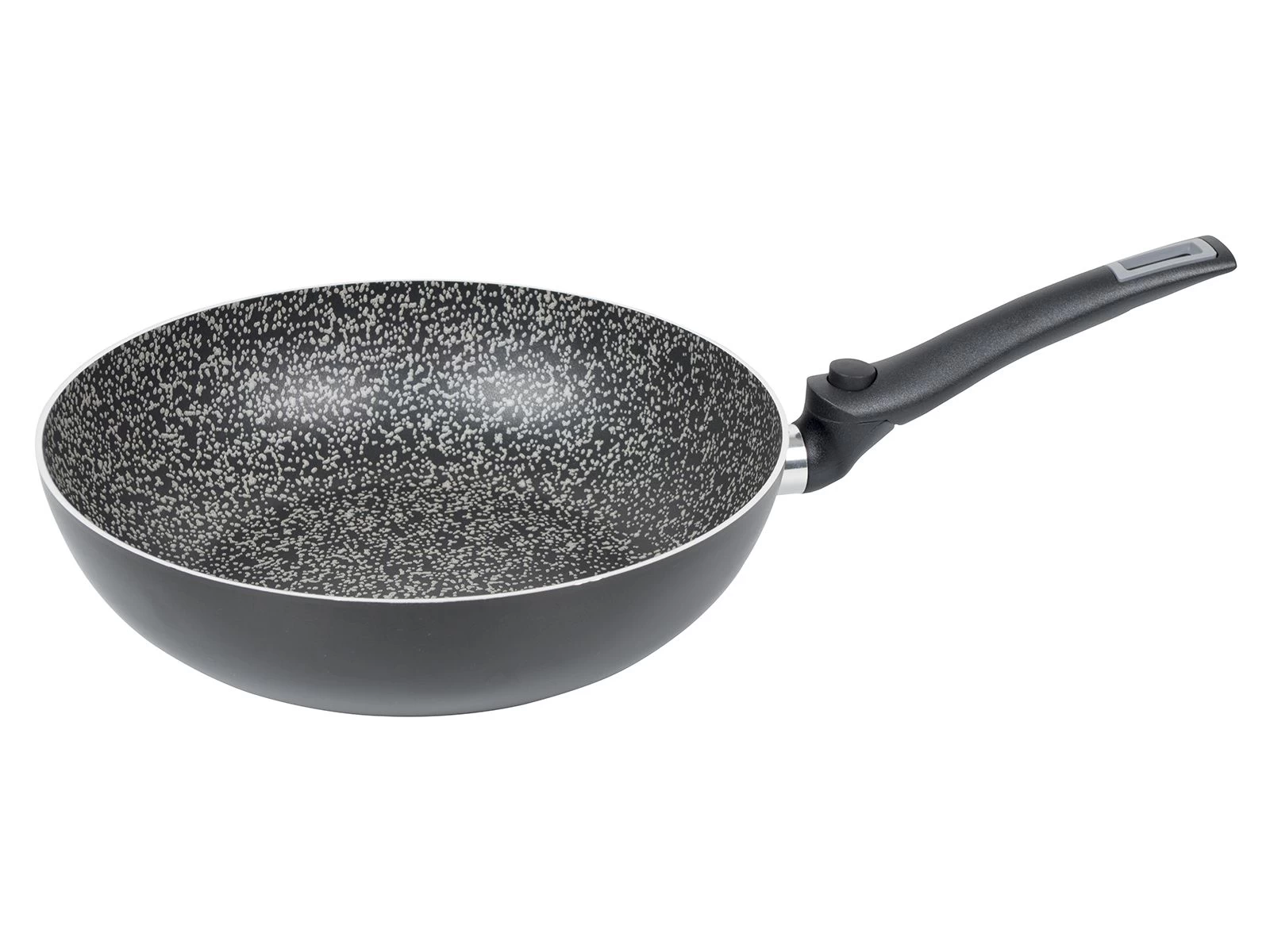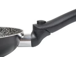 De Bo-Camp wokpan turn is een aluminium pan met een hoge opstaande rand. Deze lichtgewicht pan is voorzien van een 5-laags Salus Stone® coating en een anti-slip onderkant. Door de wegklapbare handgreep is de pan ruimtebesparend en makkelijk mee te nemen.