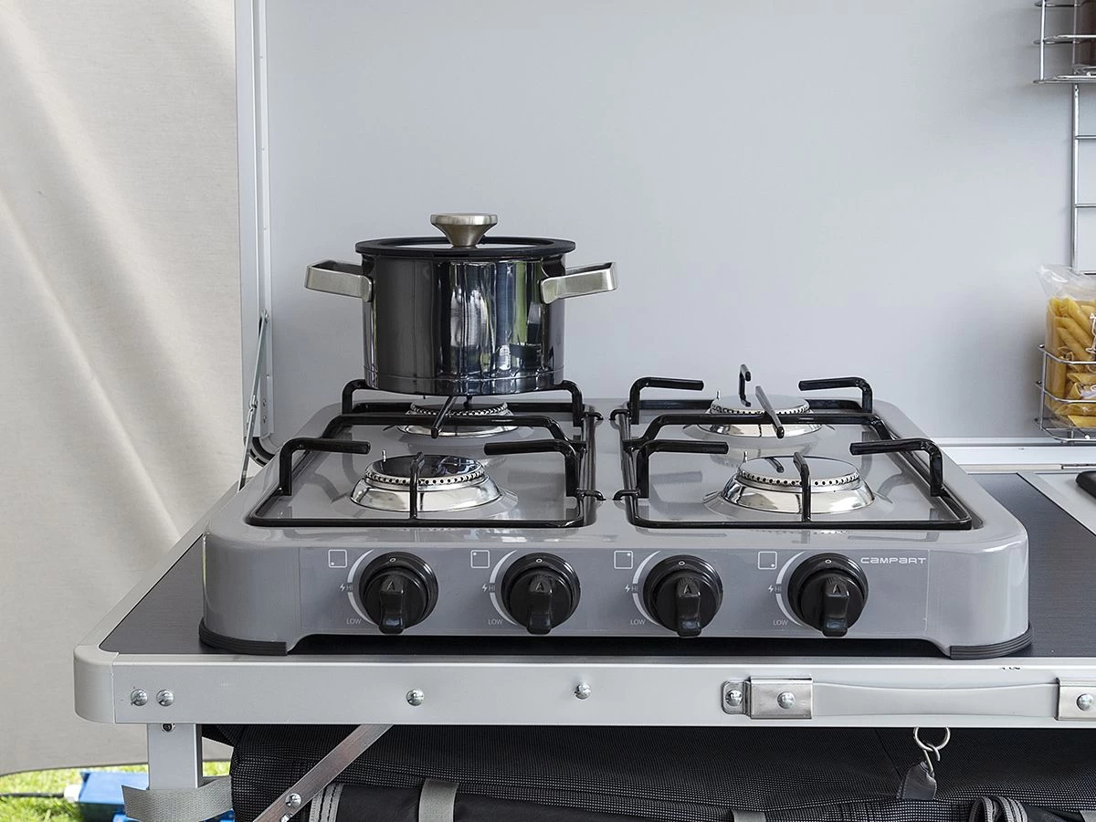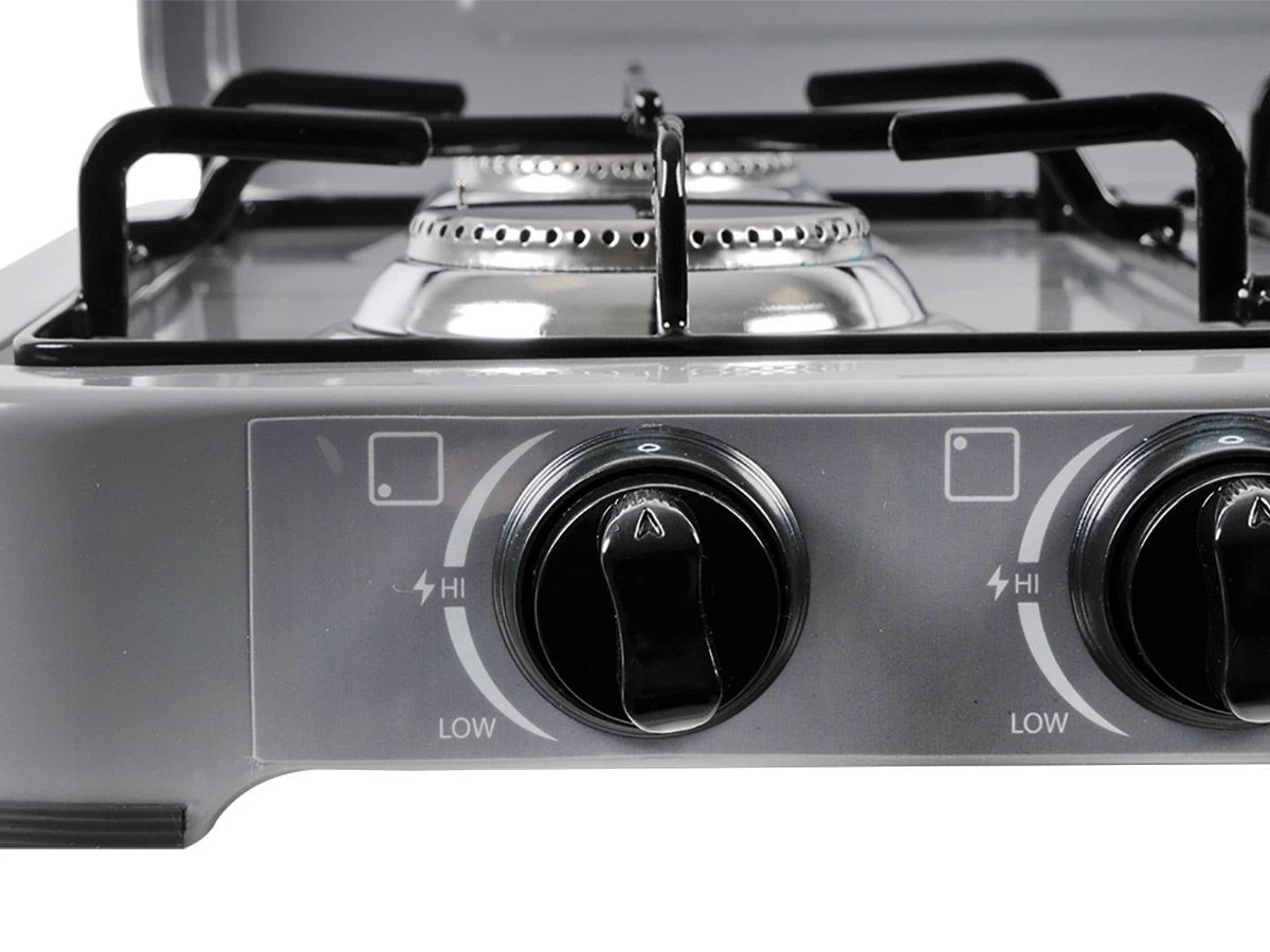 Wil je op de camping de lekkerste maaltijden kunnen bereiden op een kooktoestel? En wil je de ruimte hebben om meerdere pannen tegelijkertijd te kunnen gebruiken? Dan is dit grote kooktoestel van CamPart een goede optie! De GA-8404 beschikt over een thermische beveiliging die ervoor zorgt dat de gastoevoer stopt als de vlam onverhoopt uitgaat. En dankzij het licht gewicht en het compacte formaat kun je dit kooktoestel makkelijk mee nemen naar de camping.
