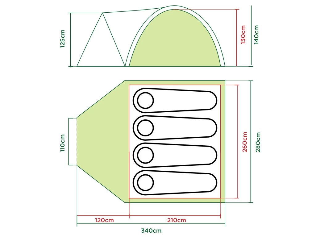 De Darwin 4 Plus Grey is een 4-persoons koepeltent met een ruime voortent en grondzeil met opstaande rand. Voorzien ventilatiepunten in de nok, aan de zijkanten en in de binnentent zodat de Darwin op warme en vochtige dagen goed geventileerd kan worden. De Geknikte tentstok aan de voorzijde geeft de Darwin serie niet alleen zijn herkenbare look, maar zorgt er ook voor dat er niet teveel spanning op de voorste tentstok komt te staan.