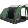 Het grondzeil bij de ingang van de tent in neerklapbaar, zo voorkom je dat je over de opstaande rand van het grondzeil struikelt. Wanneer je de ingang dichtritst kun je het grondzeil omhoog zetten en vastzetten zodat water en ongedierte geen kans krijgt om binnen te komen.