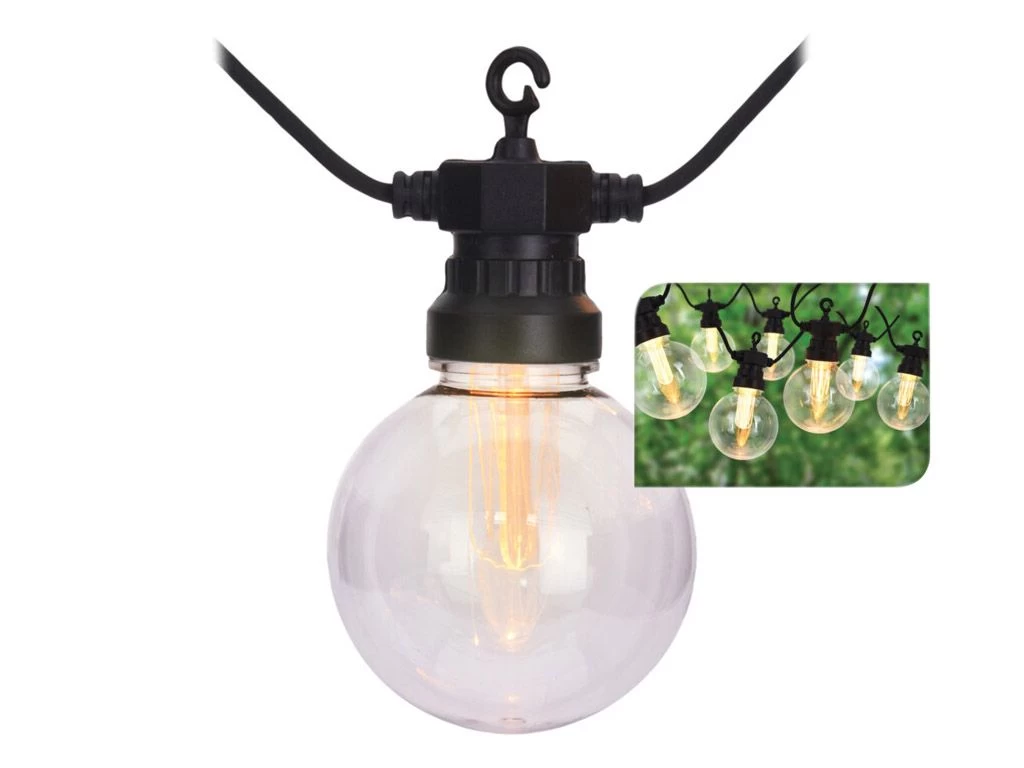 Een leuke partyverlichting met 10 LED lampjes. 7.5 meter lang. Leuk voor zowel op de camping als in de tuin om een beetje extra sfeer te creëren.
