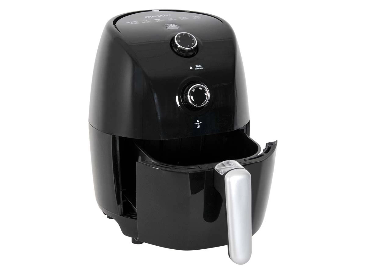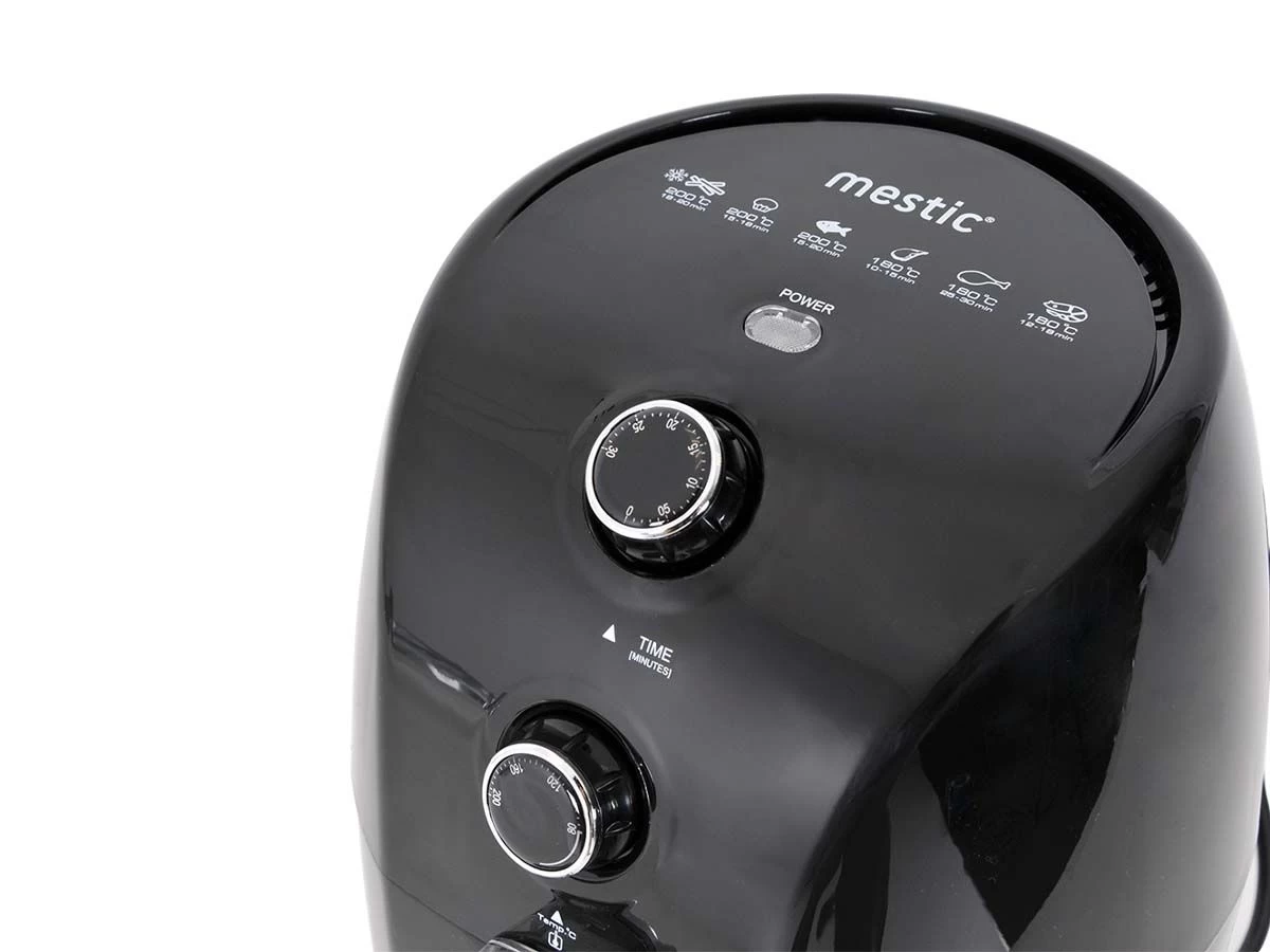 De MA-100 heteluchtfriteuse werkt zeer eenvoudig. Door middel van de draaiknop voor tijd en temperatuur kun je alle gewenste standen kiezen en deze aanpassen aan je gerecht. De temperatuur kan ingesteld worden tot maximaal 200⁰C en de timer tot 30 minuten.