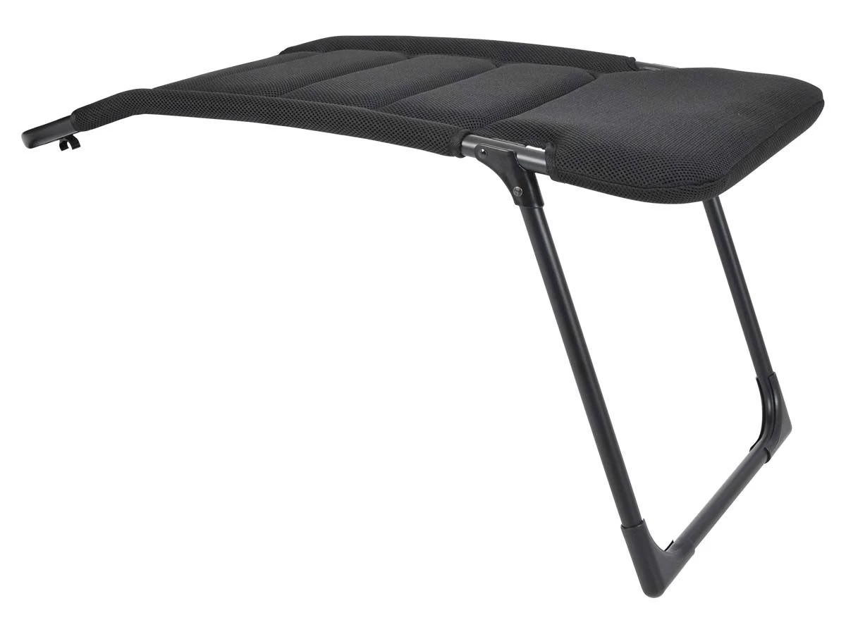 Het frame is gemaakt van aluminium en de stof is van 3D gepolsterd polyester dat zorgt voor maximaal comfort. De voetenbank is na gebruik plat in te klappen zodat hij eenvoudig vervoerd en bewaard kan worden.