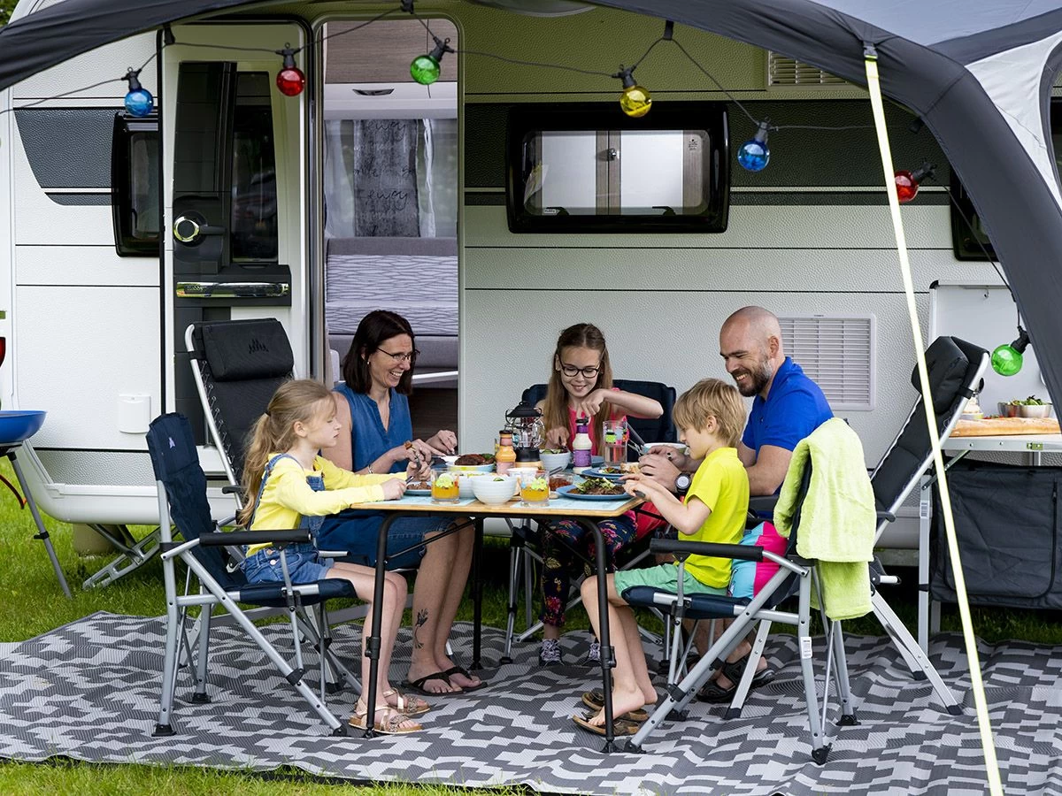 Wil jij je campingplek graag sfeervol inrichten? Kies dan voor campingmeubelen van bamboo, zoals deze klaptafel van Obelink. De Bamboo Light 120 heeft een tafelblad van bamboo en een mooi zwart frame. De tafel heeft een afmeting van 120 x 80 cm en is in hoogte verstelbaar van 51 cm tot 70 cm hoog. De poten zijn voorzien van stelvoetjes zodat de tafel ook op een ongelijke ondergrond recht kunt neerzetten.