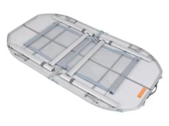 Onder het blad zit een handig lectuurnet zodat je altijd je boek of tijdschrift in de buurt hebt. Na gebruik is de tafel compact op te vouwen, door het deelbare blad kun je de tafel inklappen als een koffer.
