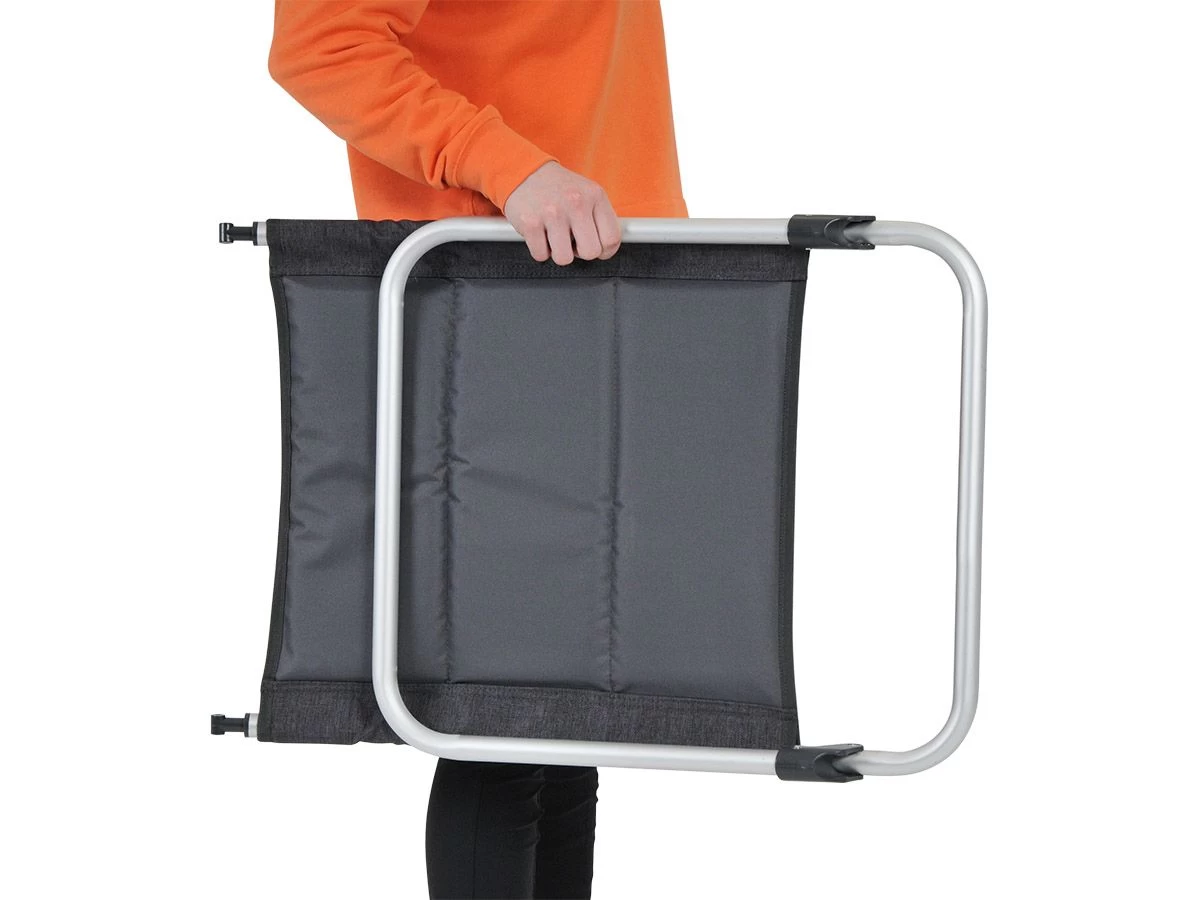 De voetensteun is gemaakt van lichtgewicht aluminium met een gepolsterd polyester bekleding.