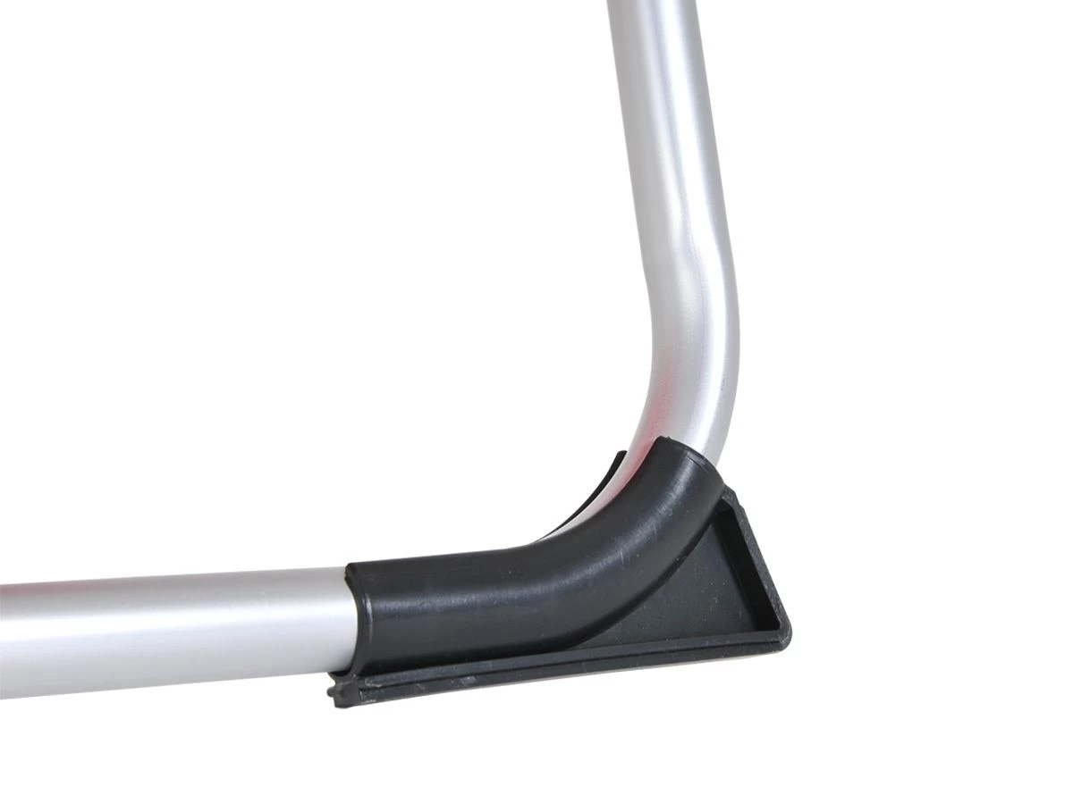 Het frame van de stoel is gemaakt van lichtgewicht aluminium en de bekleding is van een sterke nylon stof. Je kunt deze kinderstoel plat in klappen tot een dikte van maar 6 cm. De stoel neemt dus weinig ruimte in beslag wanneer je hem wilt vervoeren of opbergen.