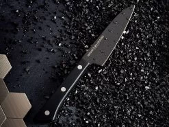 Het lemmet van de messen is van hoogwaardig AUS-8 roestvrij staal. Deze van origine Japanse staalsoort staat bekend om zijn taaiheid en scherpte behoud. Ook is het lemmet behandeld met een speciale non-stick coating welke voorkomt dat producten aan het mes blijven plakken. De heften zijn van zwart ABS, dit maakt het mes extreem licht en daardoor heel gemakkelijk in gebruik.