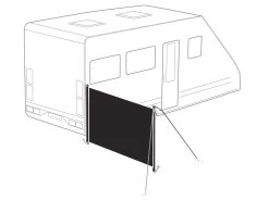Het Thule Windscreen is een windscherm dat zich automatisch oprolt. Het scherm is te bevestigen aan de wand van de caravan of kampeerauto d.m.v. een vaste houder op de wand of in de caravanrail. Het geheel is zeer eenvoudig te verwijderen. De andere zijde wordt met klittenband aan de staander vast gemaakt.