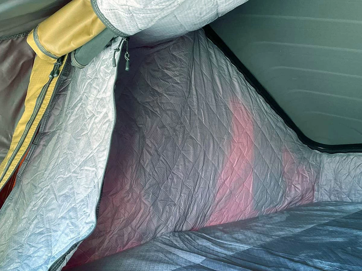 Dankzij de isolerende eigenschapen van deze binnentent kun je ook comfortabele kamperen met de daktent zonder dat je kou hoeft te leiden. Dankzij de ademende eigenschappen van de binnentent blijft condensvorming beperkt.