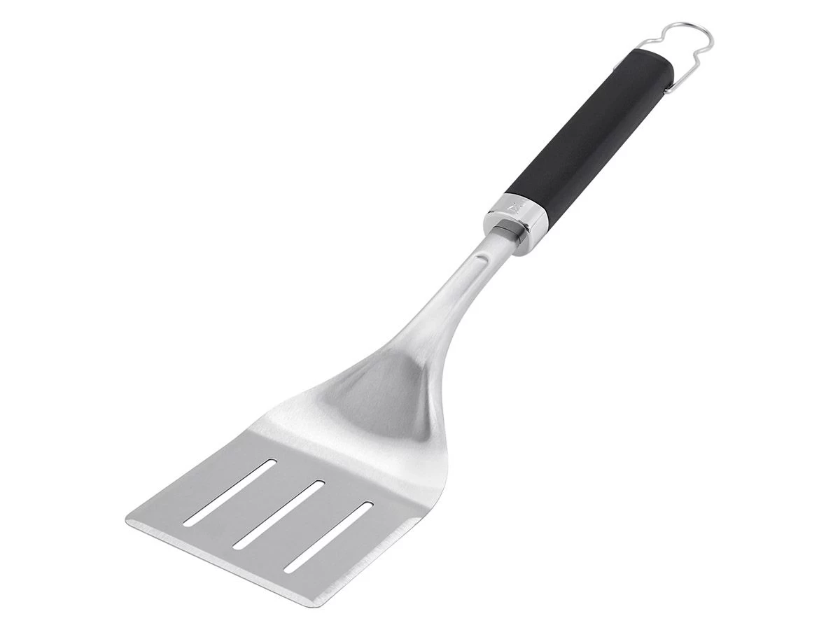 Wil jij het jezelf makkelijk maken om gerechten om te keren en te verplaatsen op de barbecue? Dan heb je de Precision barbecuespatel van Weber nodig! Dankzij het design van de brede barbecuespatel met een 3-zijdige afgeschuinde rand til je voedsel heel nauwkeurig op vanuit elke hoek. De zachte antislip handgreep biedt comfort en een stevige grip wanneer je eten op de barbecue keert en verplaatst. Deze zware, roestvrijstalen spatel is handig tijdens al je barbecue sessies!