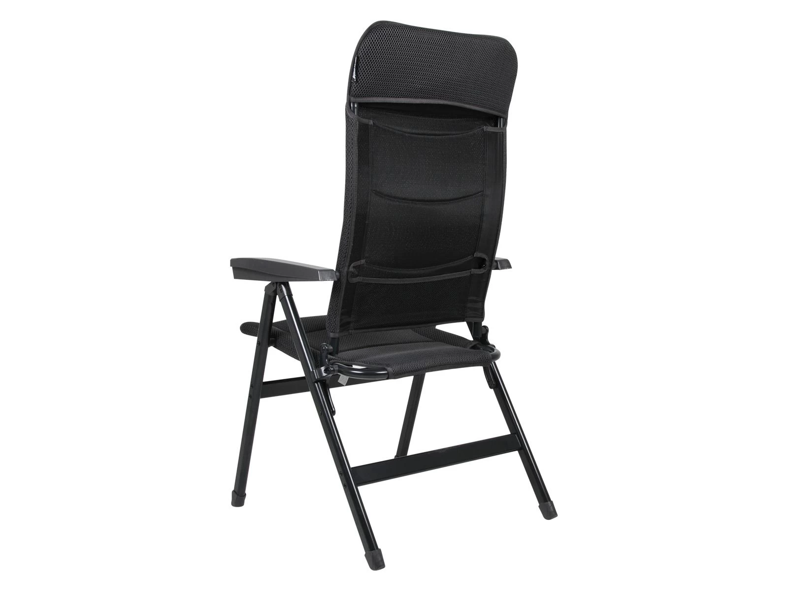 De stoel is verstelbaar in 5 verschillende standen en heeft een maximaal draagvermogen van 140 kg. Aan de achterzijde van de rugleuning zit een opbergvakje voor eventuele tijdschriften of een zonnebril.