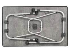 Deze campingtafel is zeer stabiel dankzij het traploos verstelbare frame en de grote voetplaten. Hierdoor is de tafel ook op iedere ondergrond stabiel neer te zetten. De tafelpoot verstelling en sluiting aan de onderzijde zijn vervaardigd uit aluminium om het gewicht zo laag mogelijk te houden.
